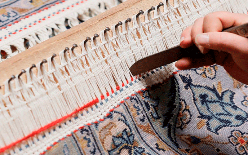 لکه برداری، شیرازه دوزی، دارکشی، چرم دوزی و پرداخت فرش با بهترین متریال موجود در بازار توسط رفوگران متخصص